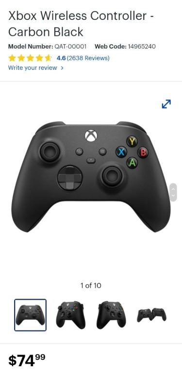 Xbox Wireless Controller - Carbon Black Retail $74.99