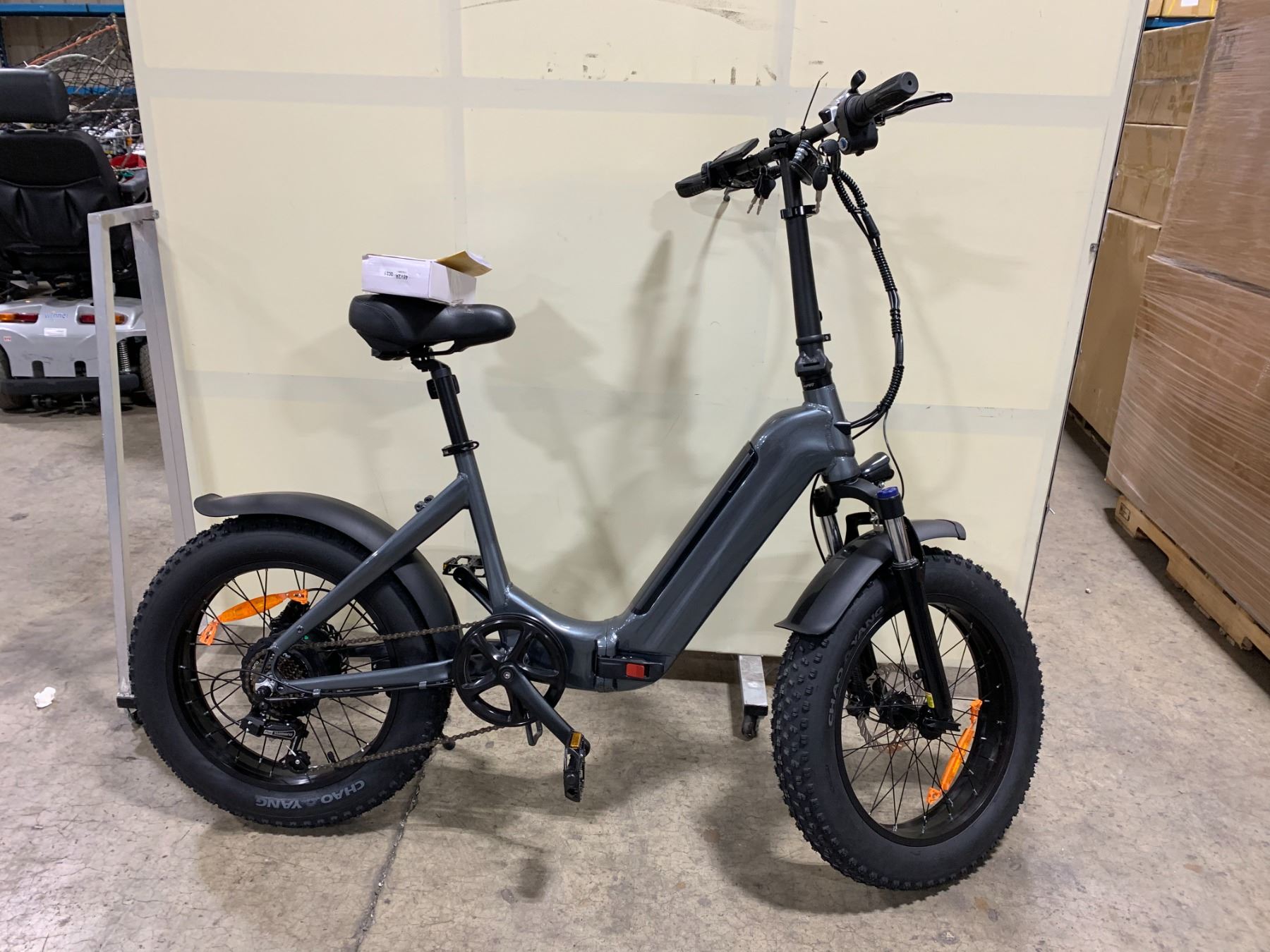Y20 GRAY ELECTRIC BIKE, FOLDABLE E-BIKE. 500W / 1000W MOTOR, 35 KMH MAX SPEED, 48 VOLT BATTERY, UP TO 75 KM RANGE, 4" X 20" TIRES, HYDRAULIC DISC BRAKES, 7 GEARS, 15.5" FRAME, 29 KG WEIGHT, FRONT FORK SUSPENSION ( *IN BOX* )