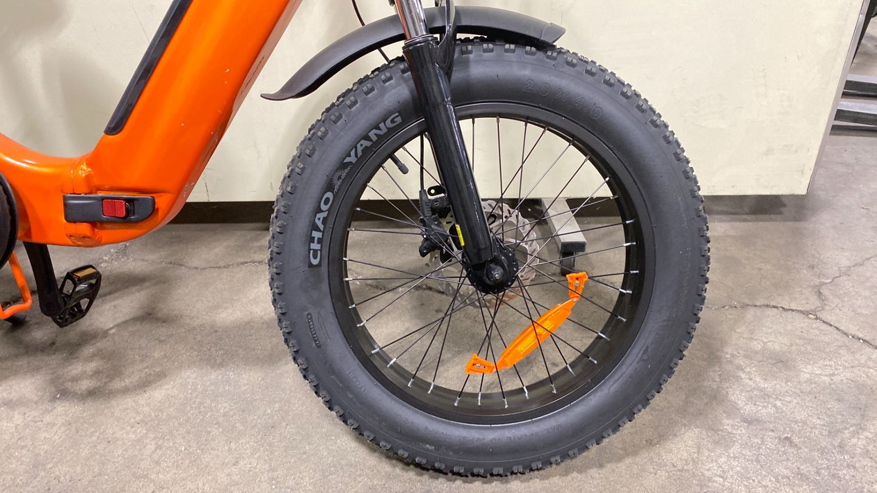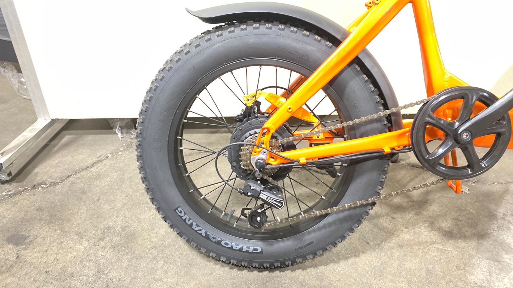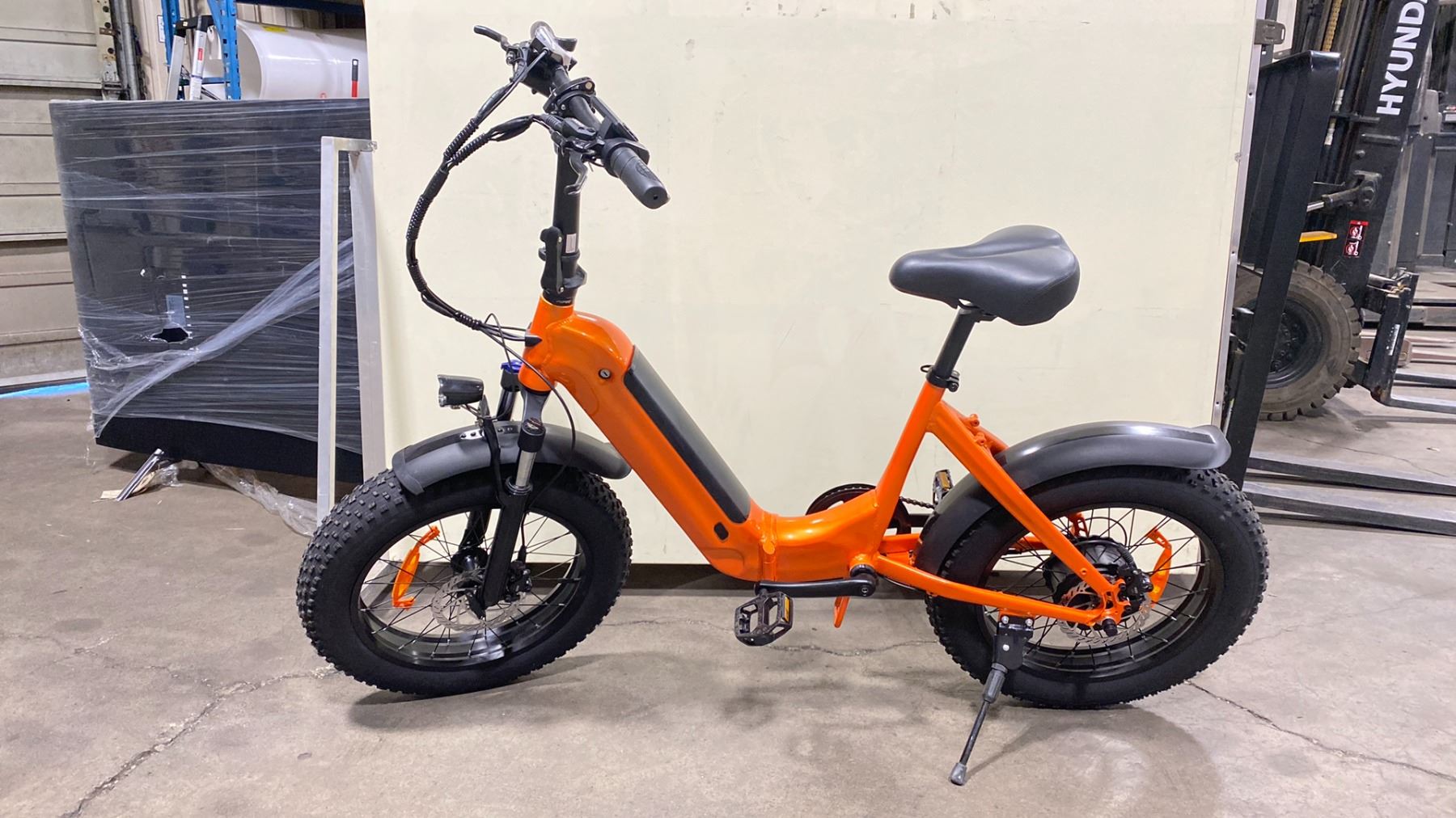 Y20 ORANGE ELECTRIC FOLDABLE E-BIKE WITH CHARGER - 75 KM RANGE, HYDRAULIC DISC BRAKES, 7 LEVELS, LCD DISPLAY, HEADLIGHT + TAILLIGHT MOTOR: 500W / 1000W MOTOR, 35 KMH MAX SPEED BATTERY: 48V TIRES: 4" X 20" FAT TIRE HAS KEYS & CHARGER *IN BOX*