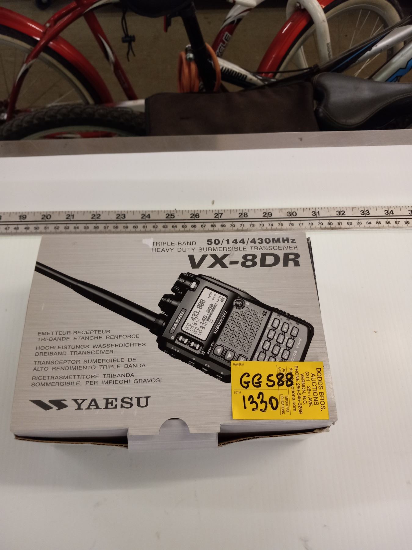 YAESU TRIPLE BAND HEAVY DUTY SUBMERSIBLE TRANSCEIVER, MODEL VX-8DR, 2 BATTERIES