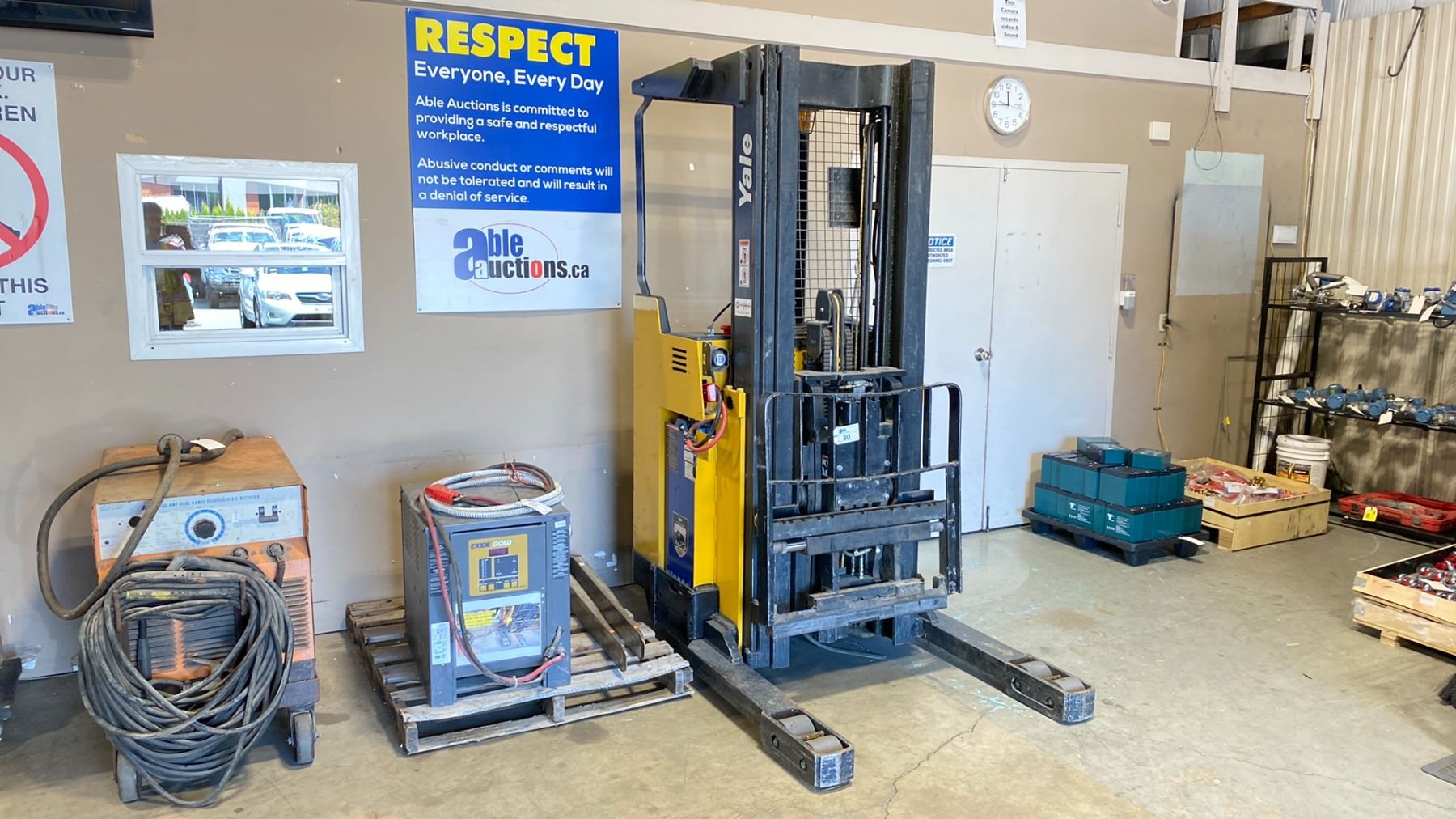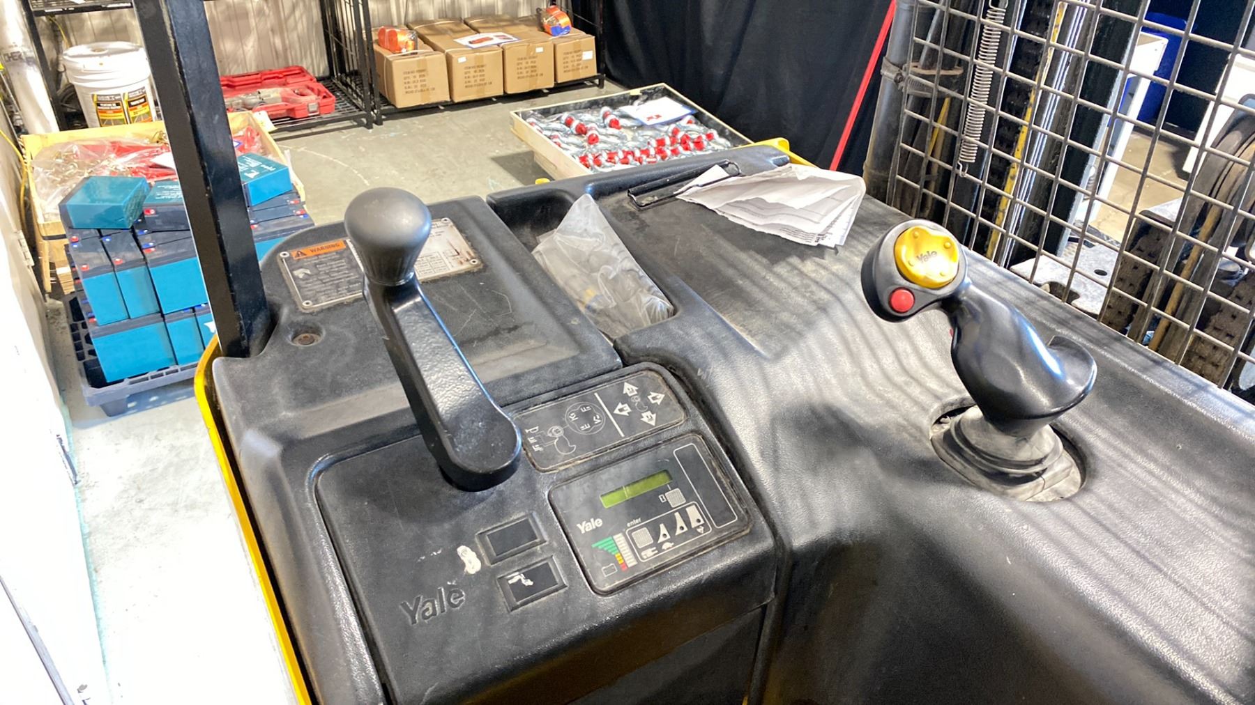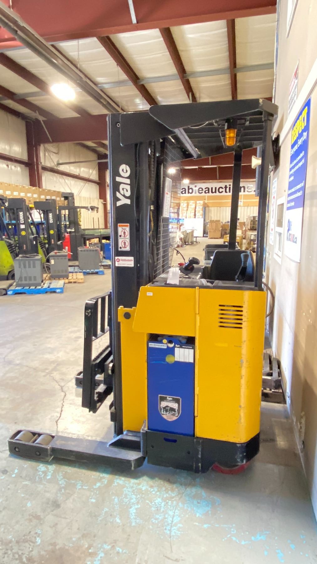 YALE 162G, REACH TRUCK/FORKLIFT, YELLOW, SER #C815N03107A, 3,522 HRS (NOT VERIFIED), KEYS, NEEDS CHARGE, WEIGHT WITH BATTERY 3,020 KG, MAX CAPACITY 4,000 24 VOLT, 3 STAGE MAST, STAND UP REACH TRUCK, 203" HEIGHT MAST WITH SIDESHIFT, COMES WITH CHARGER & 2 FORKS, GOES FORWARD & REVERSE, ELECTRIC, BRAKES WORK