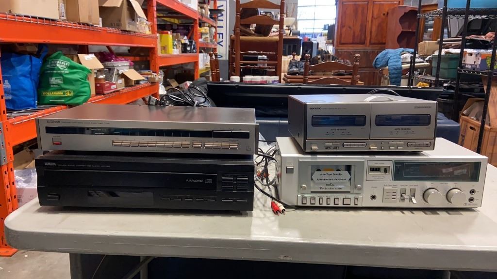 YAMAHA DISC PLAYER, LUXMAN TUNER MODEL T-230 AND TECHNICS, ONKYO CASSETE PLAYERS