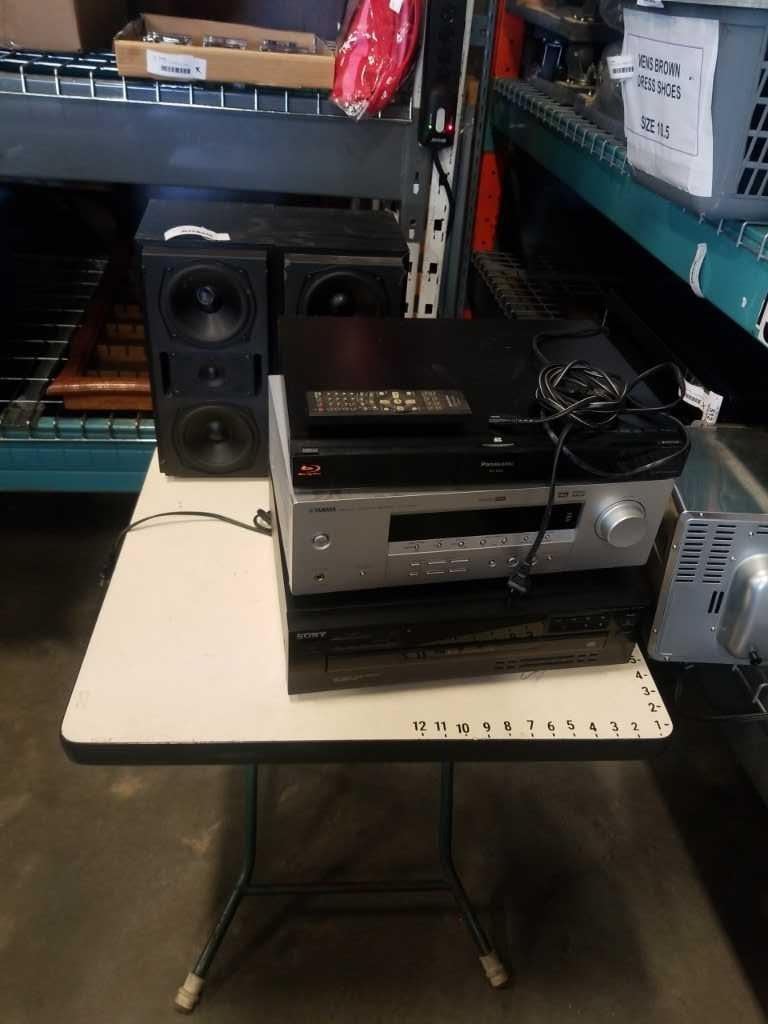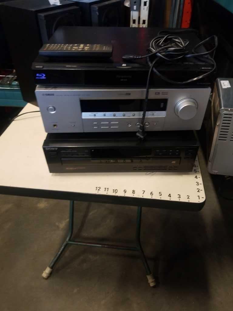 YAMAHA NATURAL SOUND AV RECEIVER, SONY CD CHANGER, BLU RAY PLAYER AND PAIR OF MISSION 781I SPEAKERS