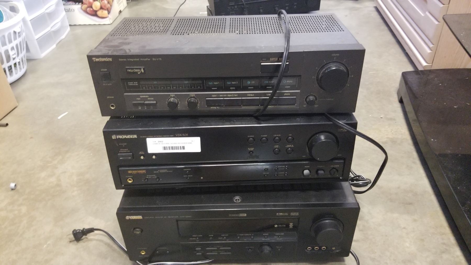 YAMAHA NATURAL SOUND RECEIVER HTR-5940 AND STEREO COMPONENTS PIONEER RECEIVER AND TECHNICS AMPLIFIER