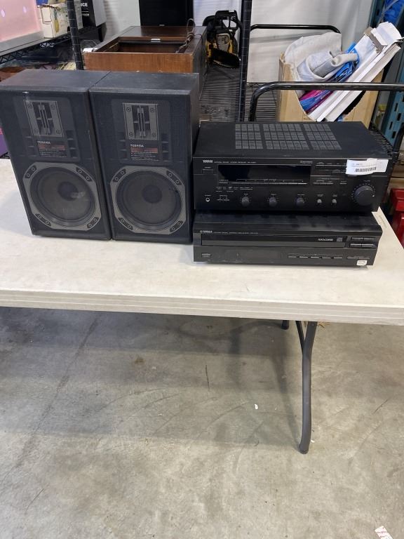 YAMAHA NATURAL SOUND RECEIVER MODEL RX-V390 AND COMPACT DISC PLAYUER, WITH SET OF TOSHIBA BOOKSHELF SPEAKERS