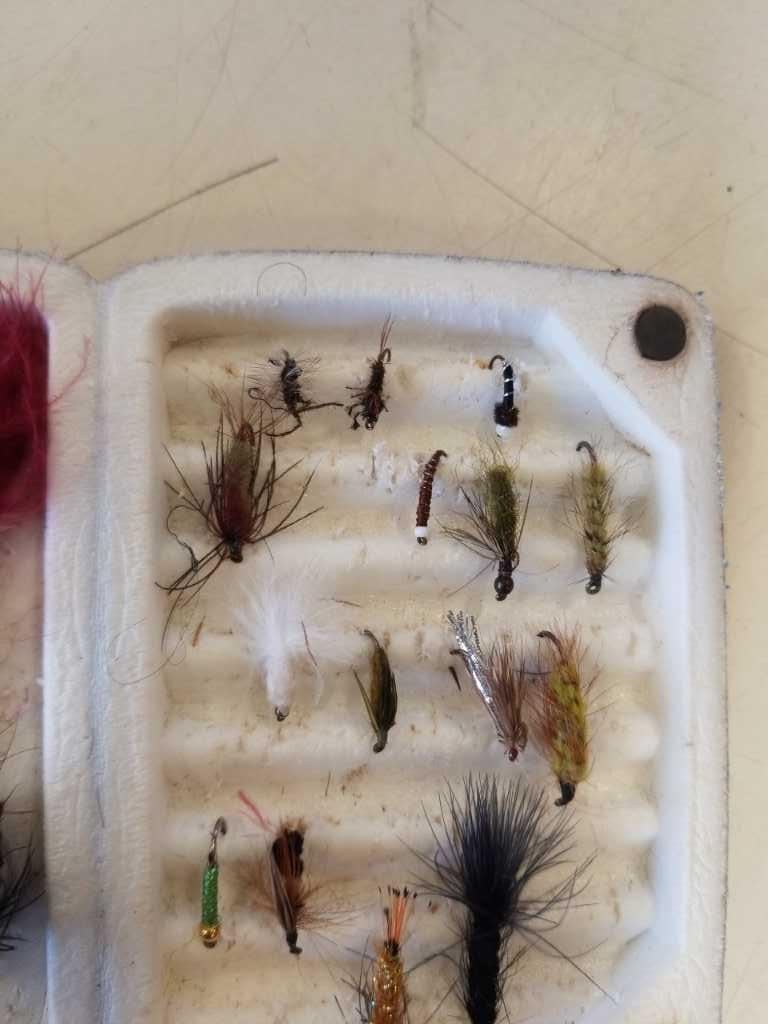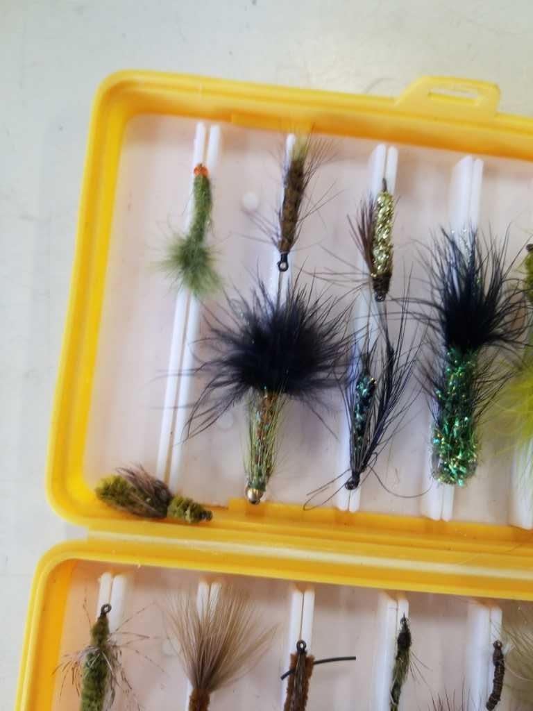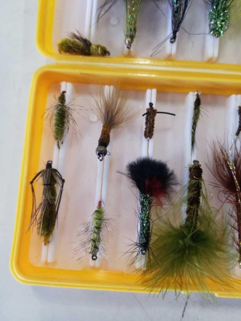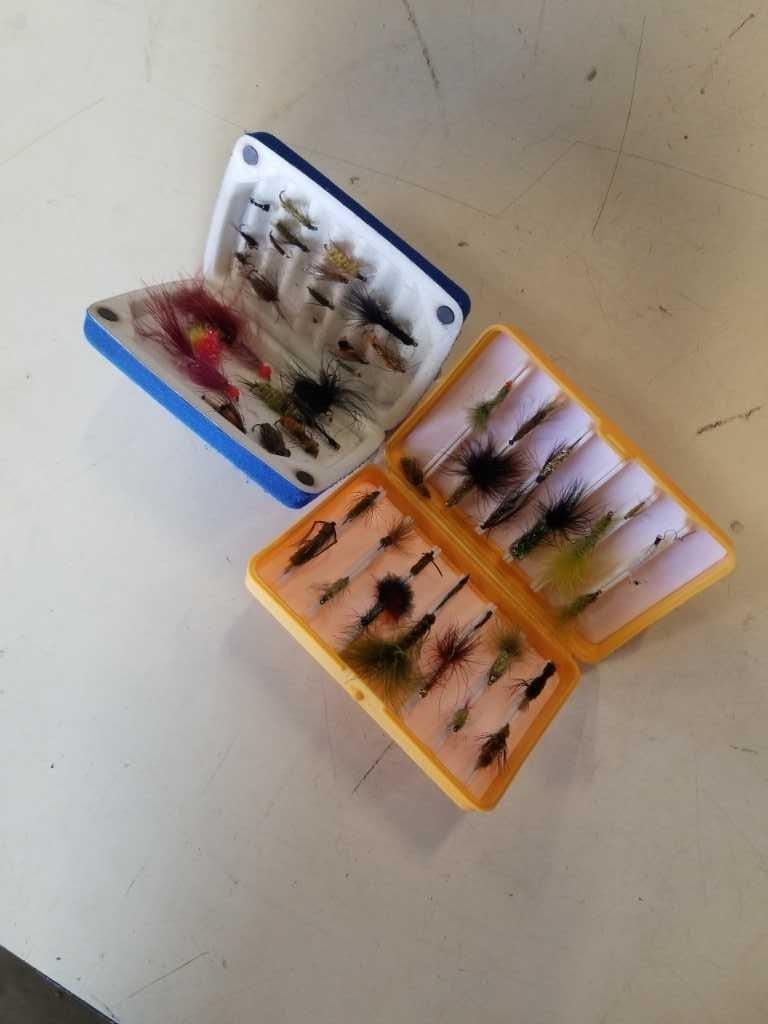 YELLOW AND BLUE FLY BOXES W/ 50 TROUT FLIES