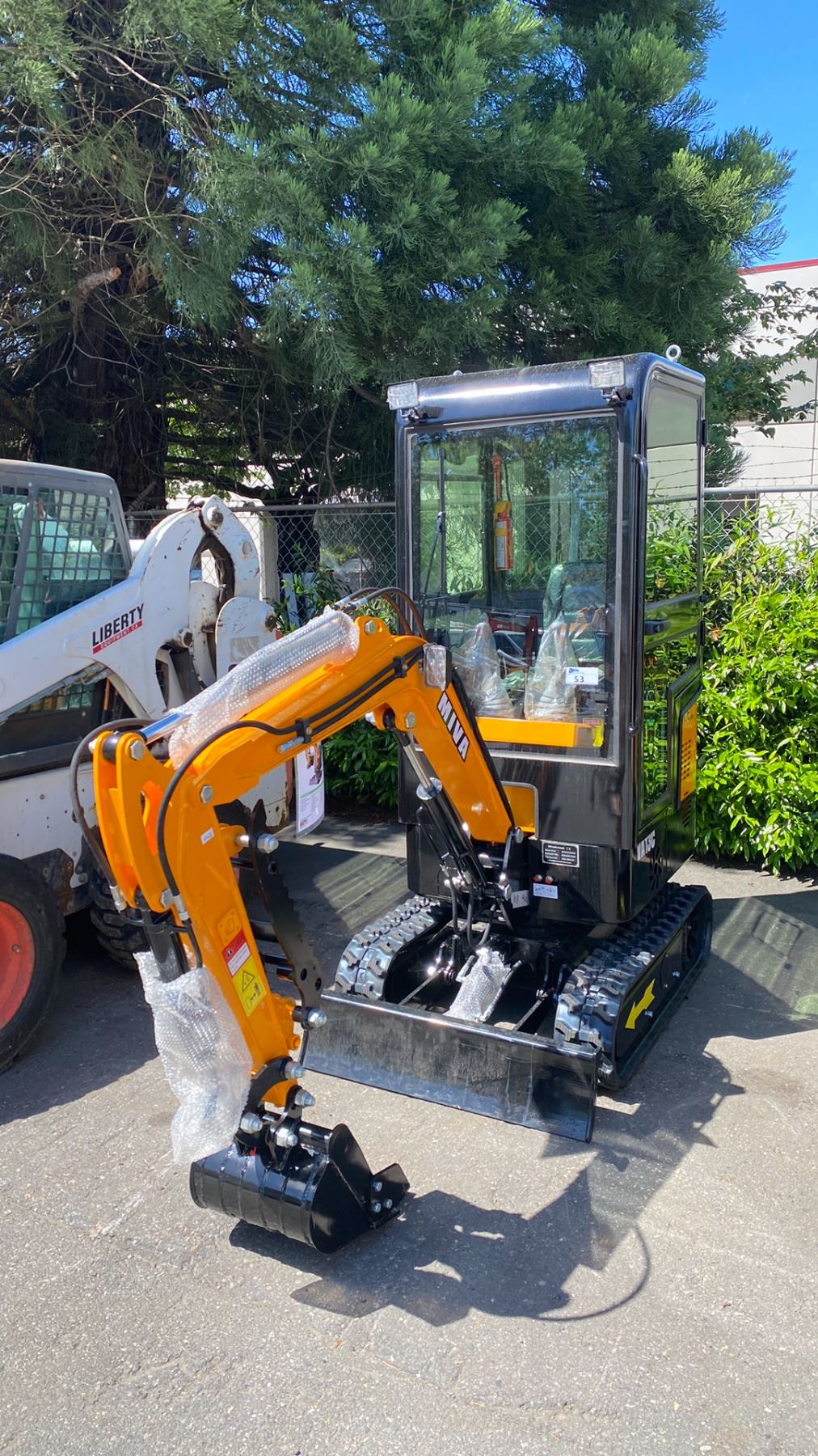 YELLOW ENCLOSED MIVA CRAWLER EXCAVATOR VA13C GAS POWERED RIDE ON MINI EXCAVATOR WITH A 15.5"W BUCKET & KEYS