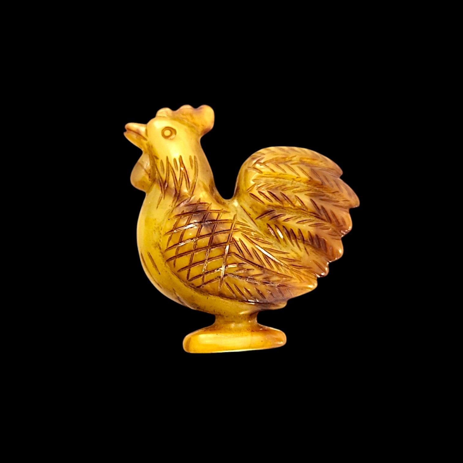 YELLOW GEMSTONE CARVED ROOSTER FIGURINE