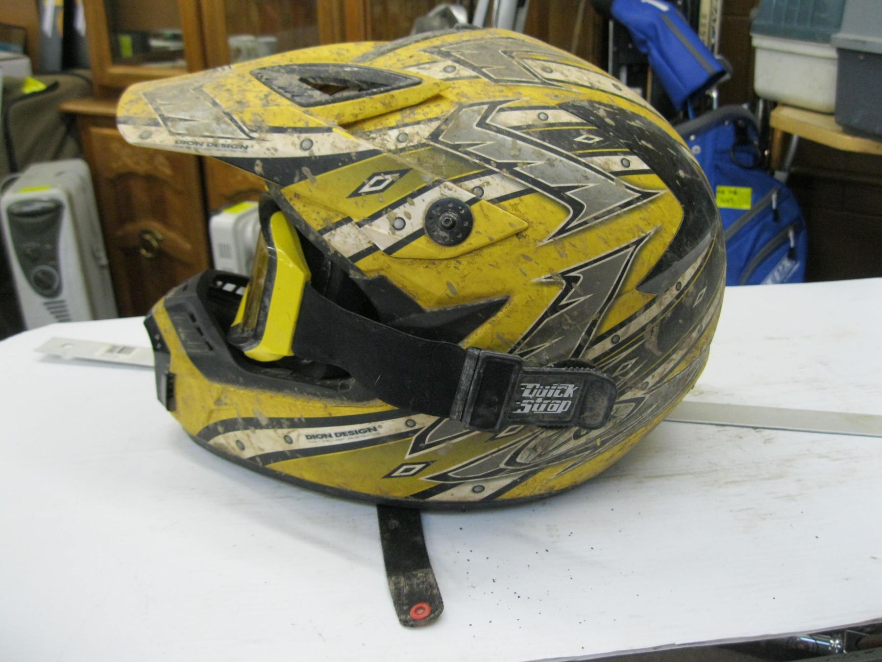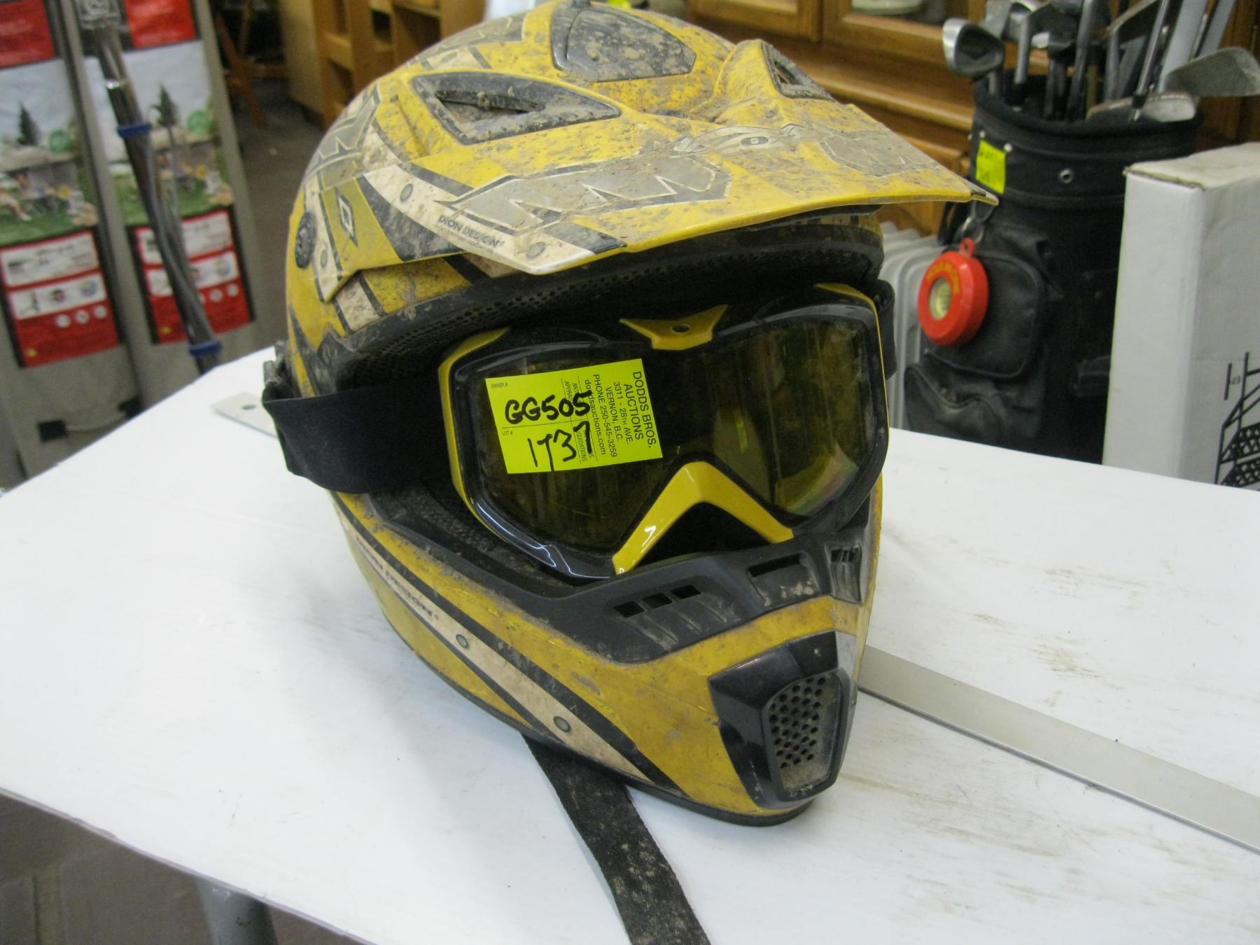 YELLOW MOTORCYCLE HELMET AND GOGGLES