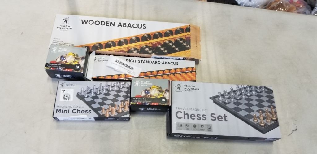 YELLOW MOUNTAIN CHESS SET, MARBELS, ABACUS