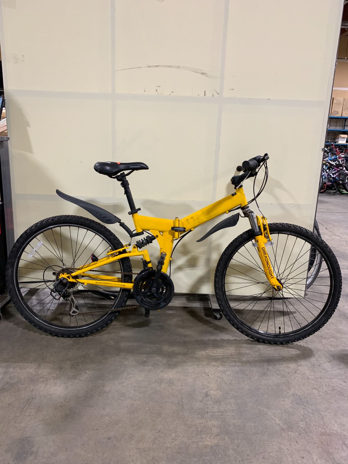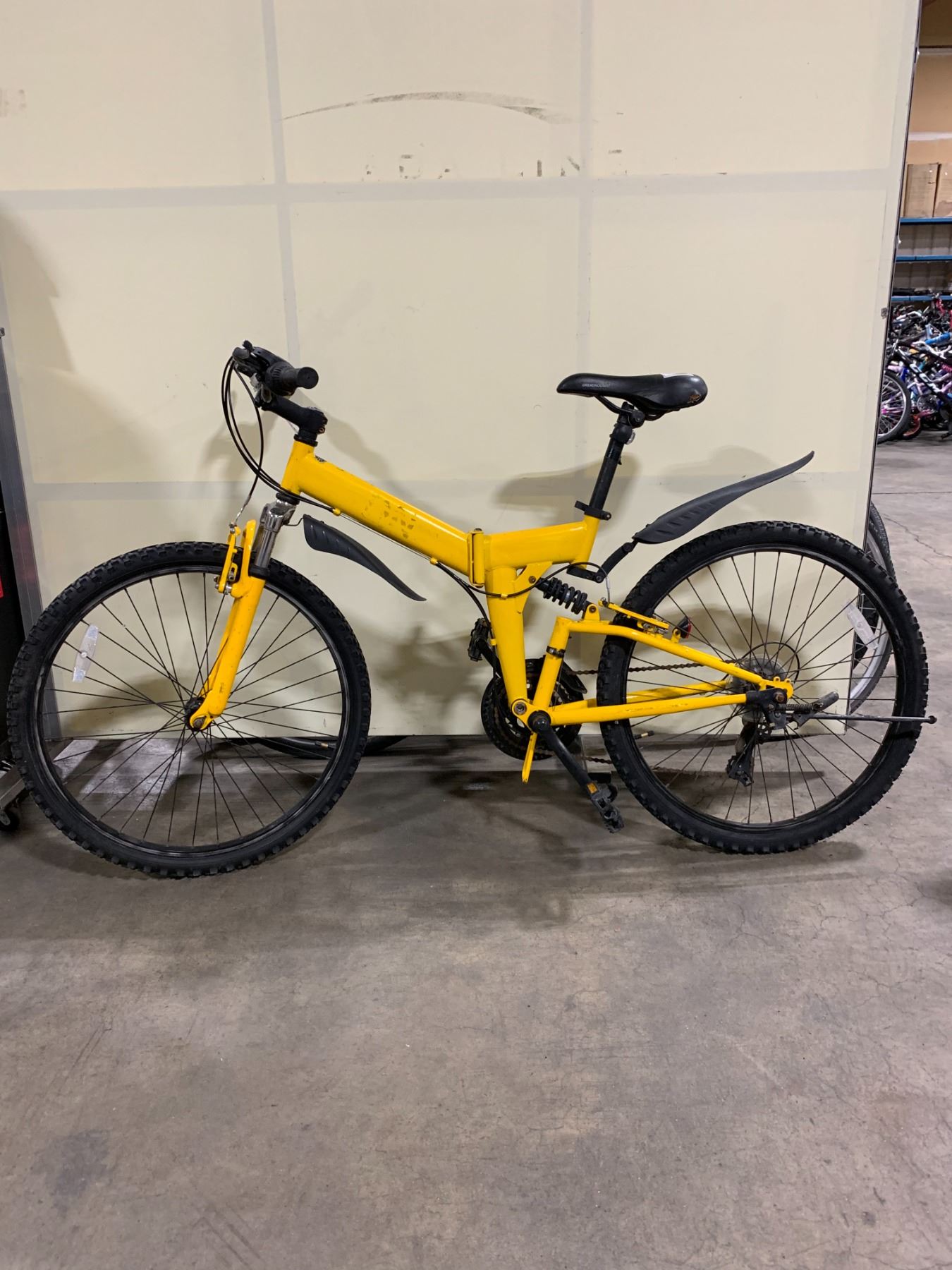 YELLOW NO NAME 18 SPEED FULL SUSPENSION FOLDABLE HYBRID BIKE