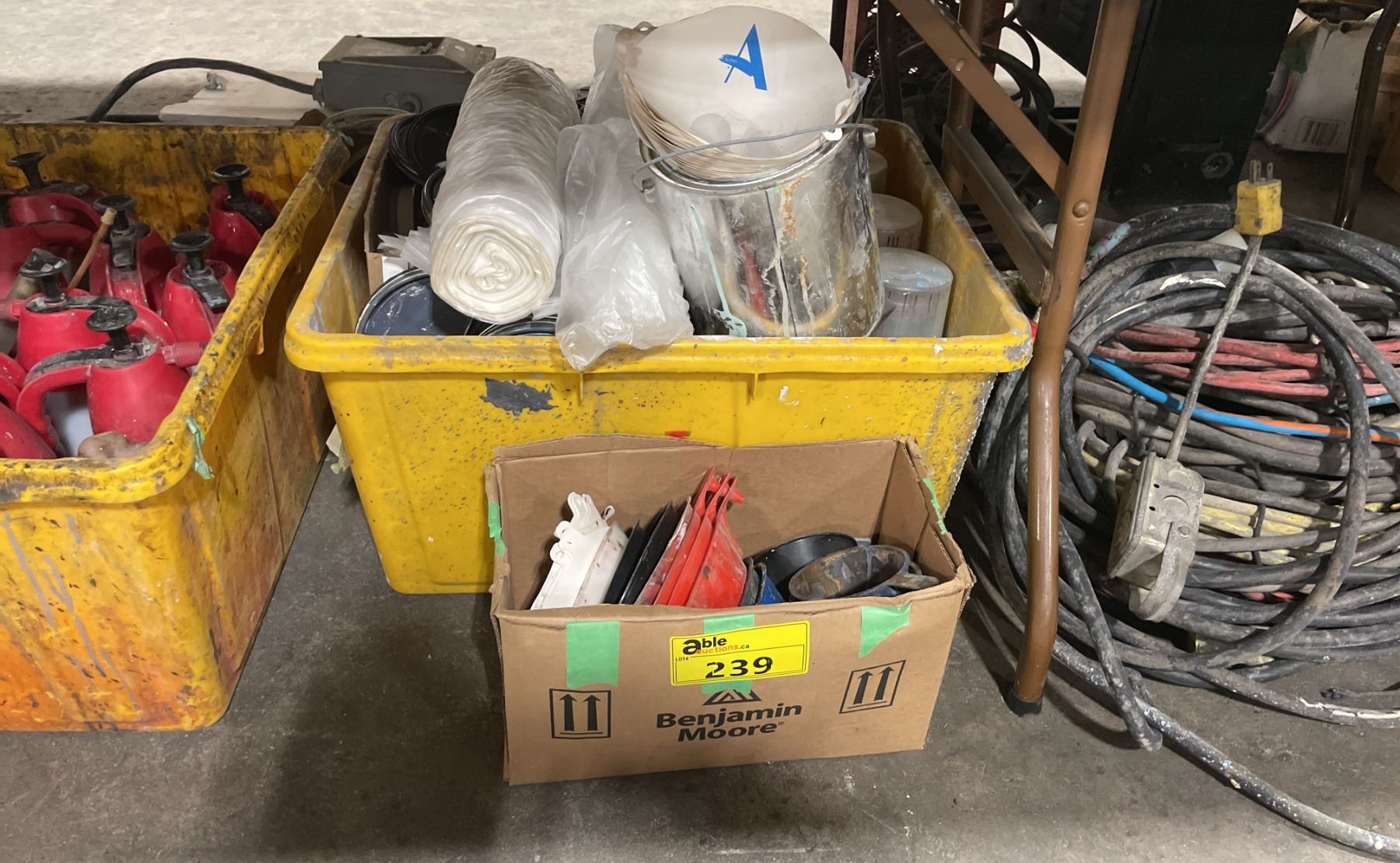 YELLOW PLASTIC BIN OF ASSORTED INDUSTRIAL PAINT PRODUCTS *BIN INCLUDED*