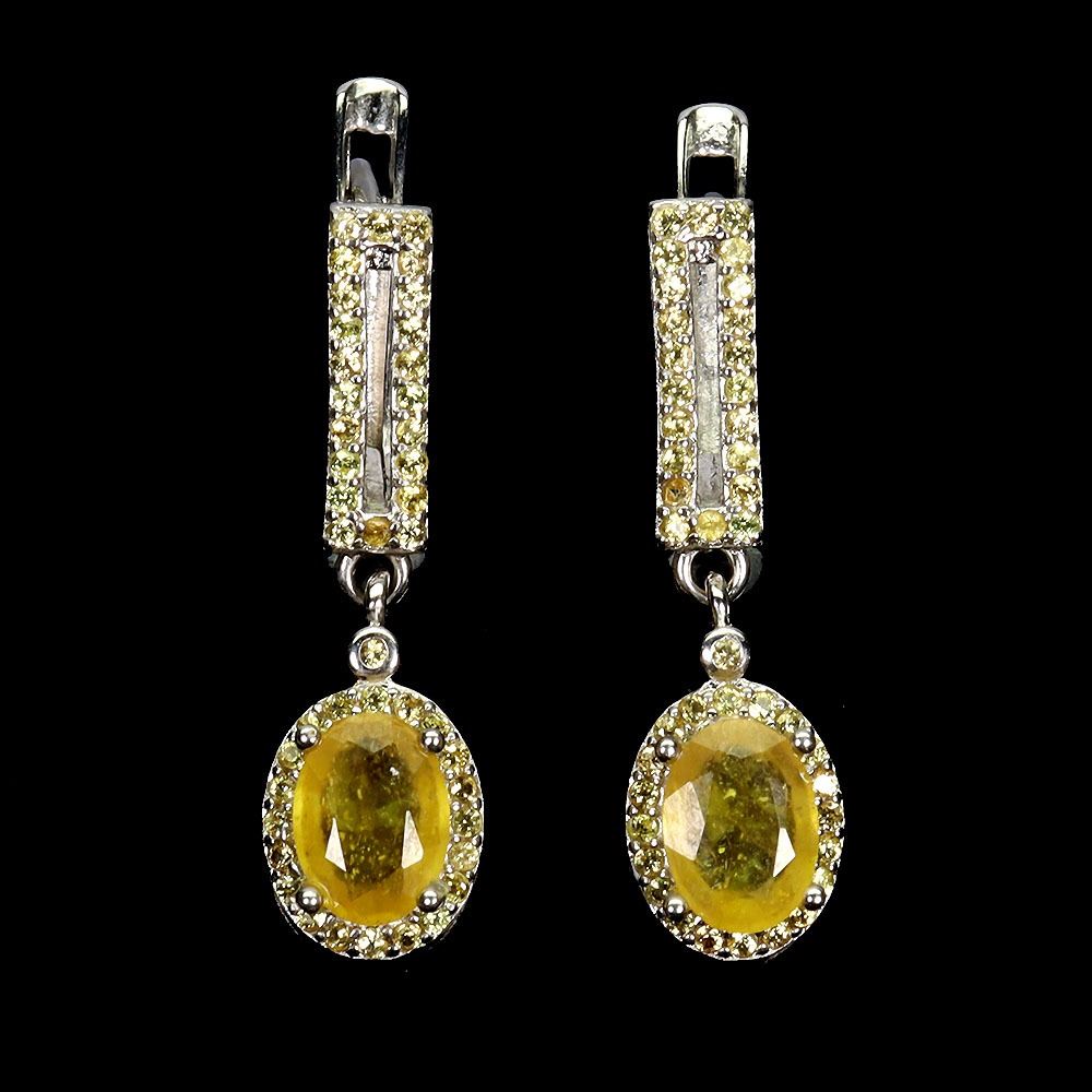 YELLOW SAPPHIRE EARRINGS IN 14K WHITE PLATED GOLD OVER 925 STERLING SILVER - APPRAISED REPLACEMENT VALUE $ 1,280