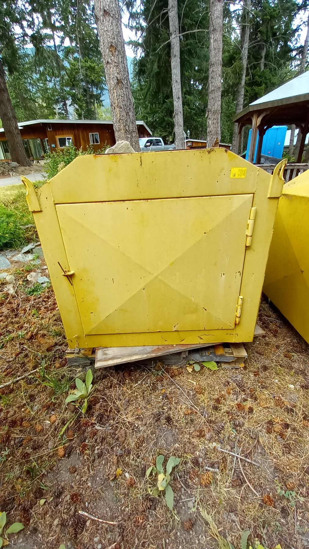 YELLOW STEEL BIN W/DOOR (OLD TELUS PHONEBOOK RECYCLING BIN)