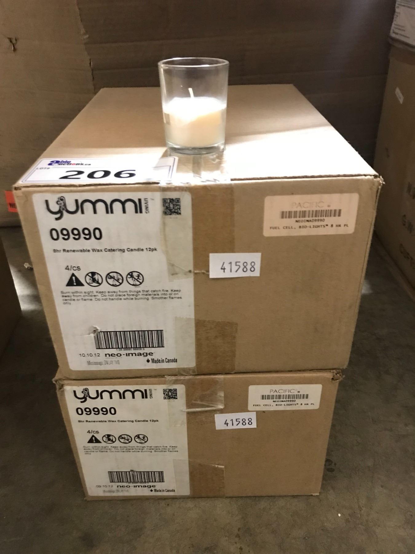 YUMMI 09990 8HR RENEWABLE WAX CATERING CANDLES. 48 PER BOX. 2 BOXES.