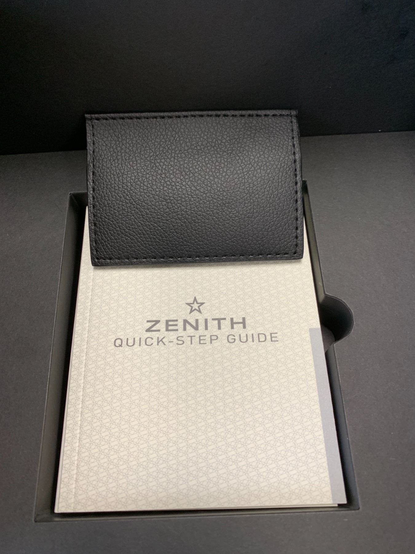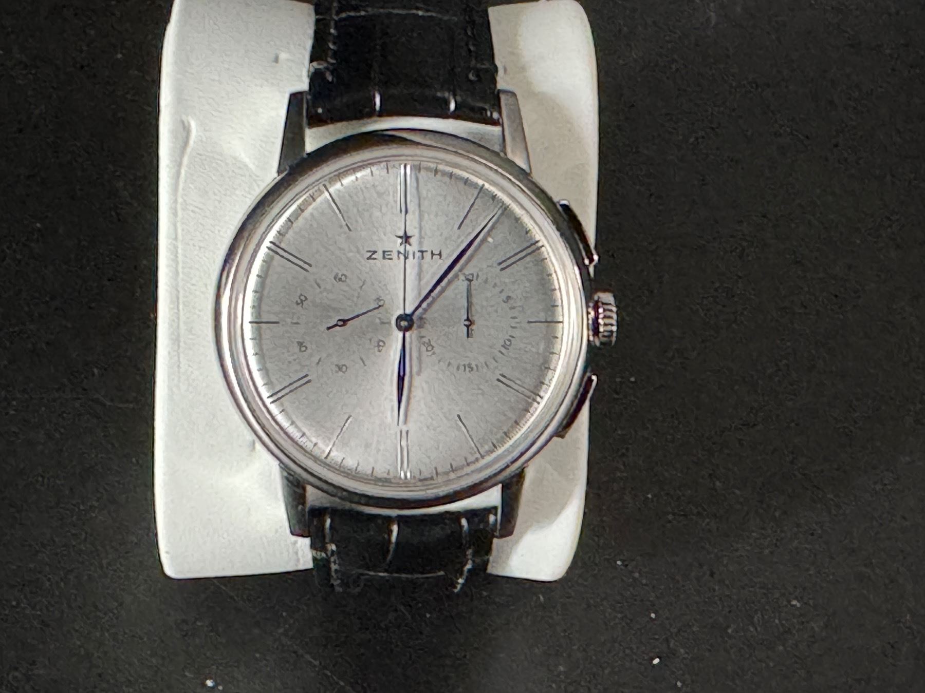 ZENITH MENS WRISTWATCH 334 568 AUTO ELITE MODEL WITH STAINLESS STEEL CASE AND BLACK LEATHER STRAP
