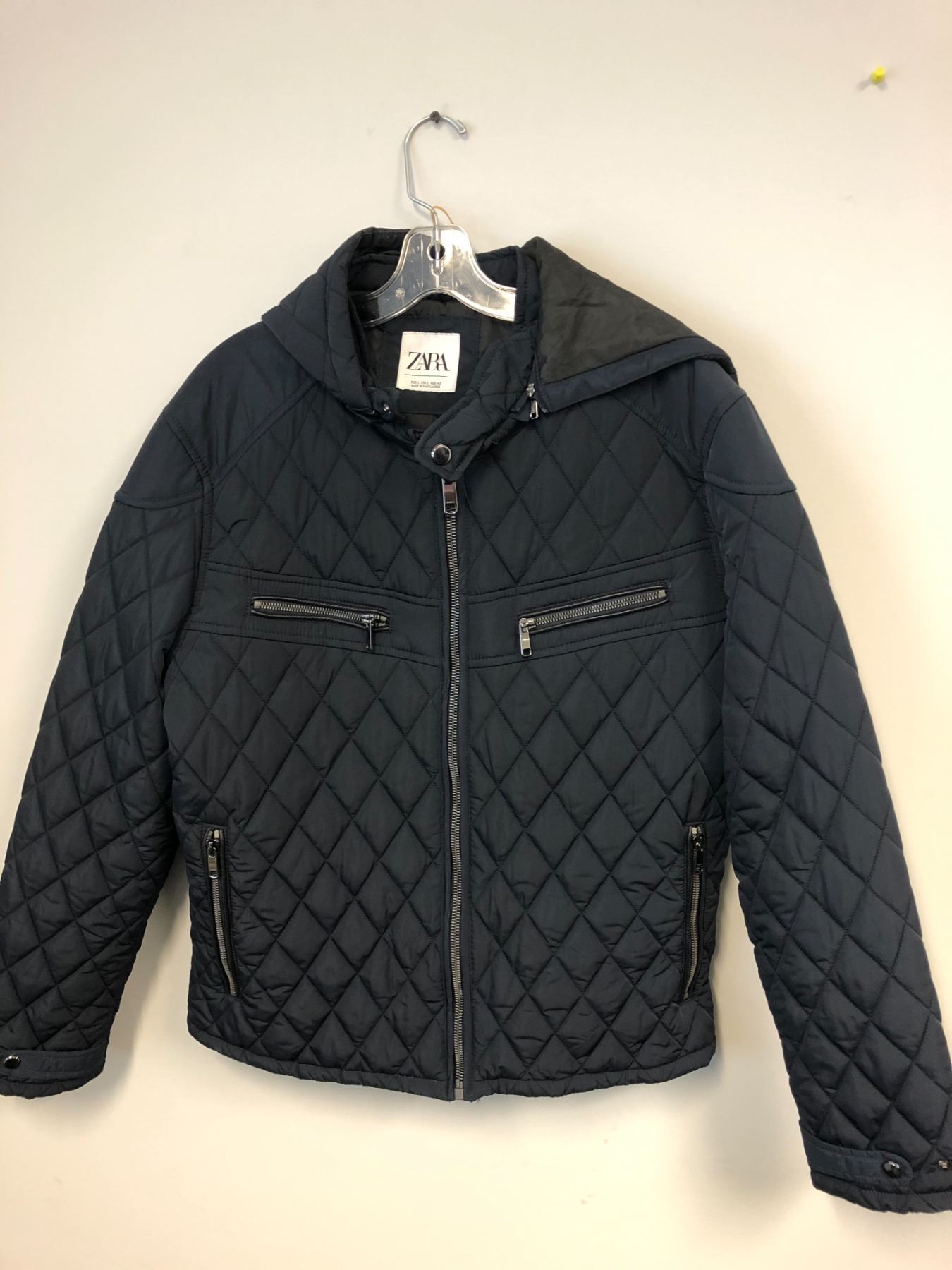 Zara - Ladies Quilted Hooded Jacket - Navy Blue - Size L CLOTHING DISCLAIMER - Items are Movie Set Clothing. There are various sizes, some new and some used and some with tags.