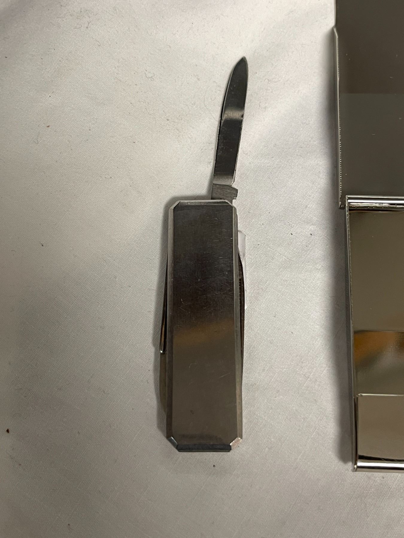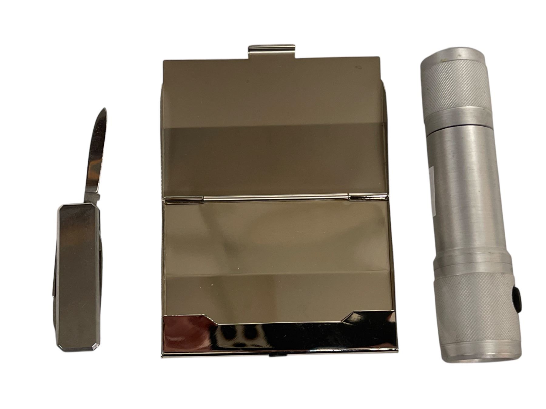 Zippo Flashlight, Rostfrei Pocket Knife, & Morton Clark Metal Card Case