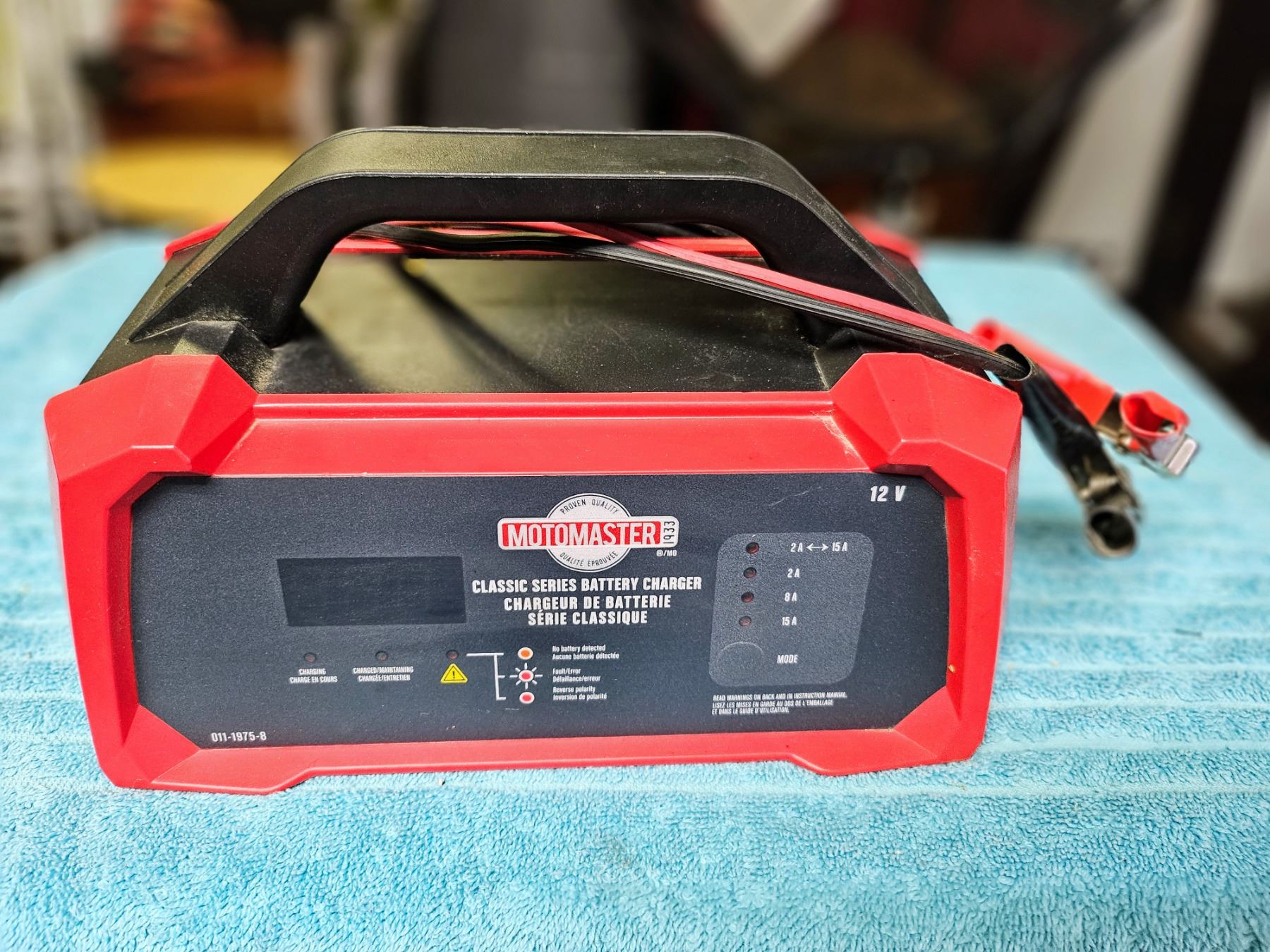 Moto Master classic series battery charger with digital display and multiple amperage modes