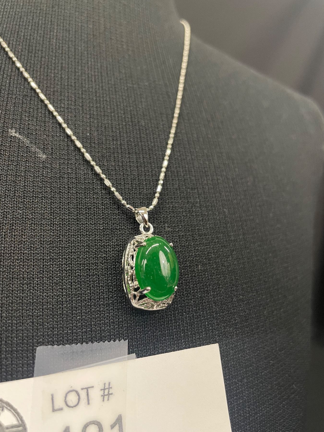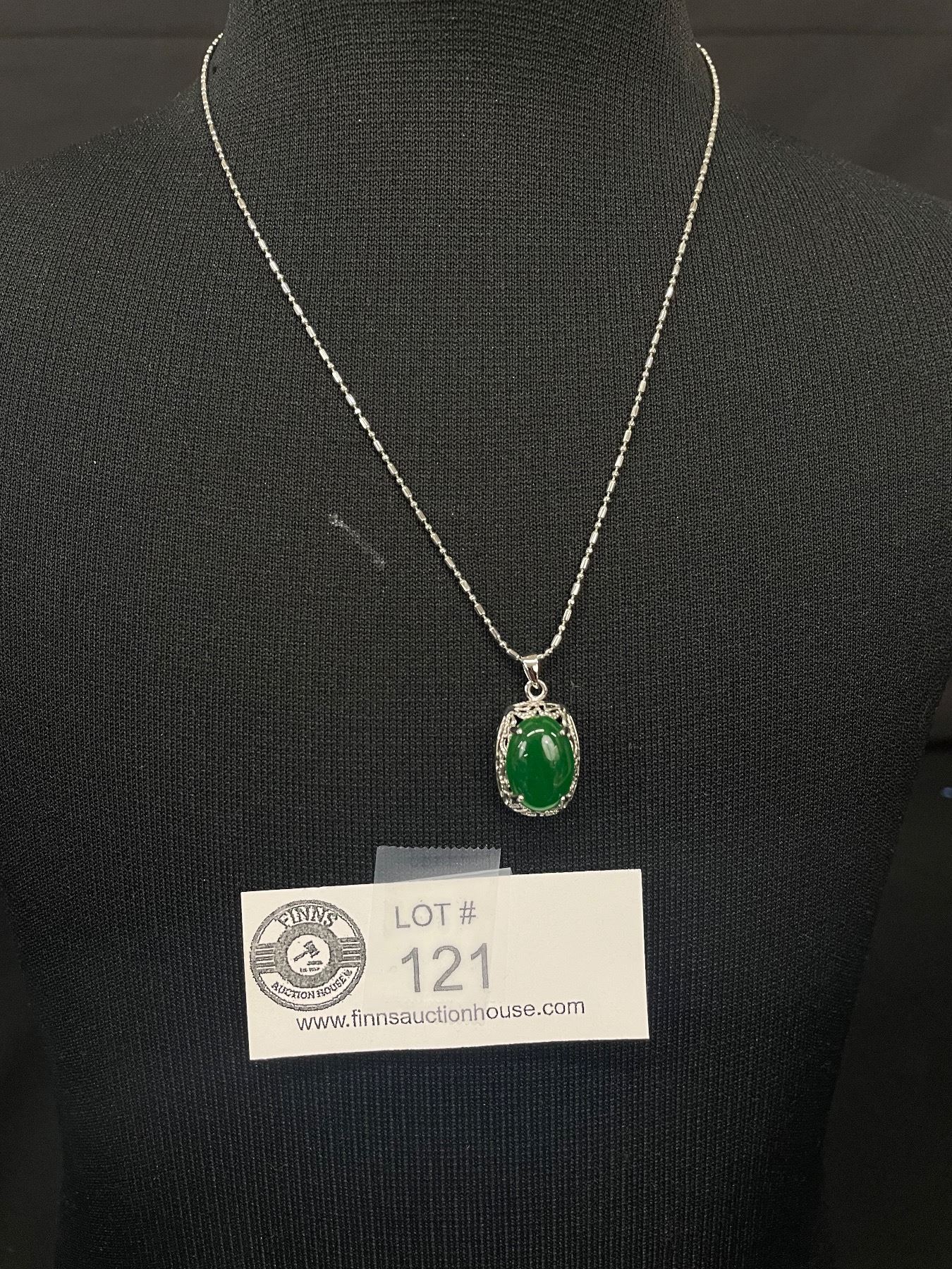 beautiful Silver Plated with Dark Green Stone Filigree Design Pendant with Chain Necklace. 15"-17" Long