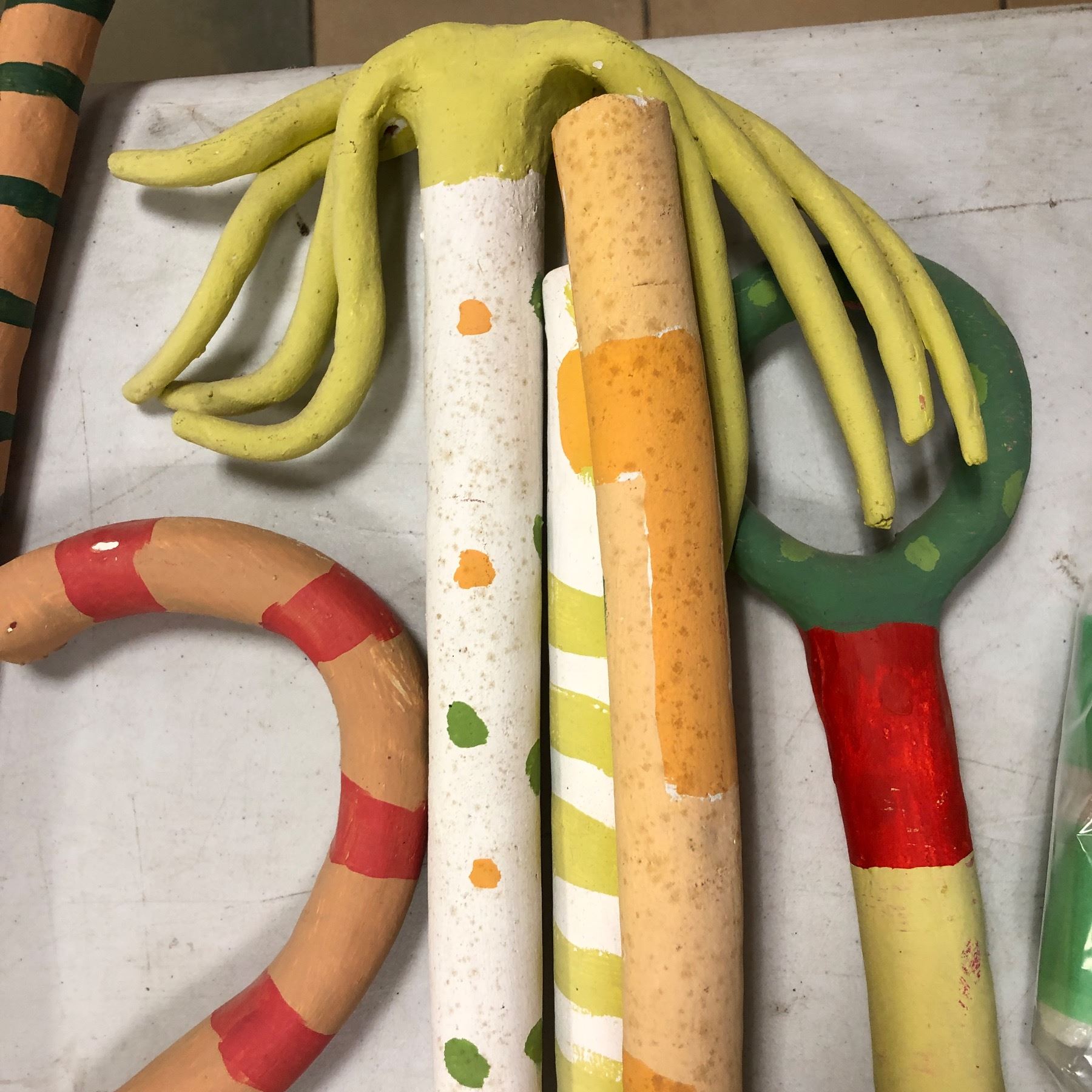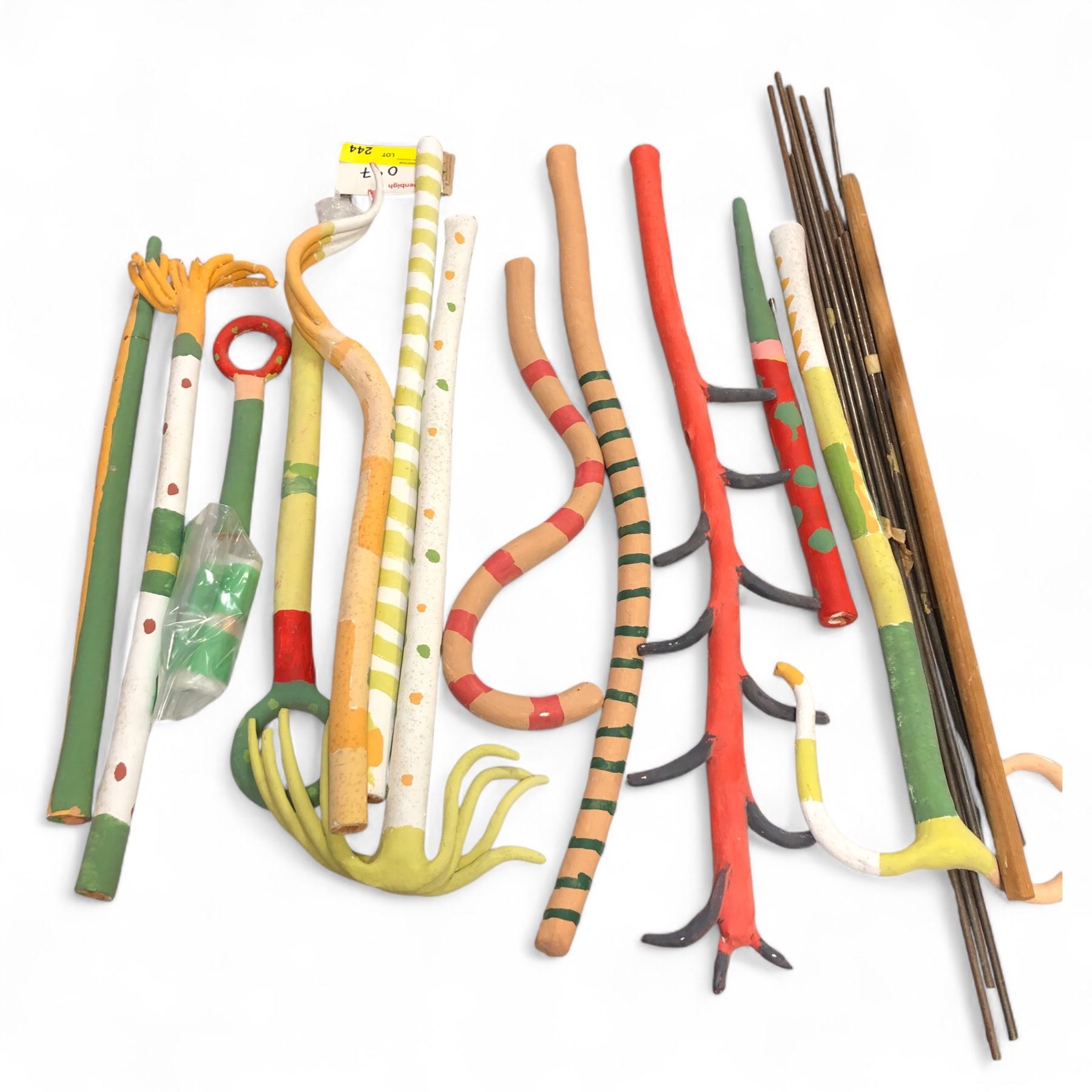 from "Embellished Landscape: assorted forearm-length plants with metal rods" 1985 w/Ceramic, oil (Broken tip, third from the right - Michener, Sally)