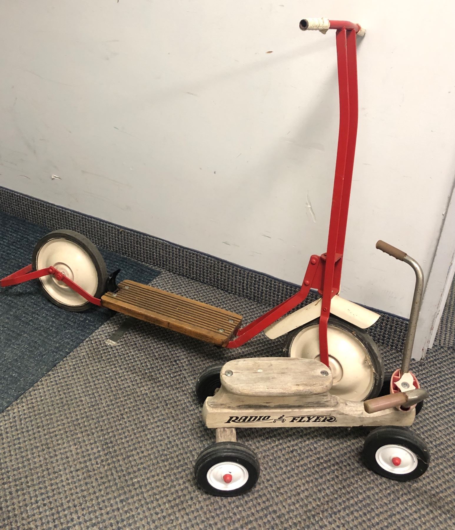 group of 2 vintage estate items - includes Vintage Radio Flyer tricycle & red vintage scooter