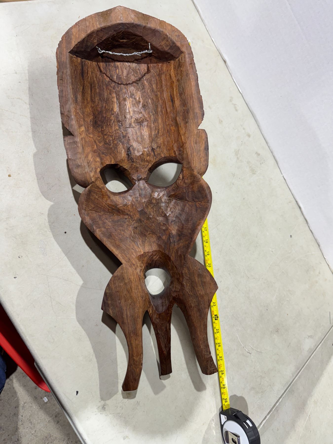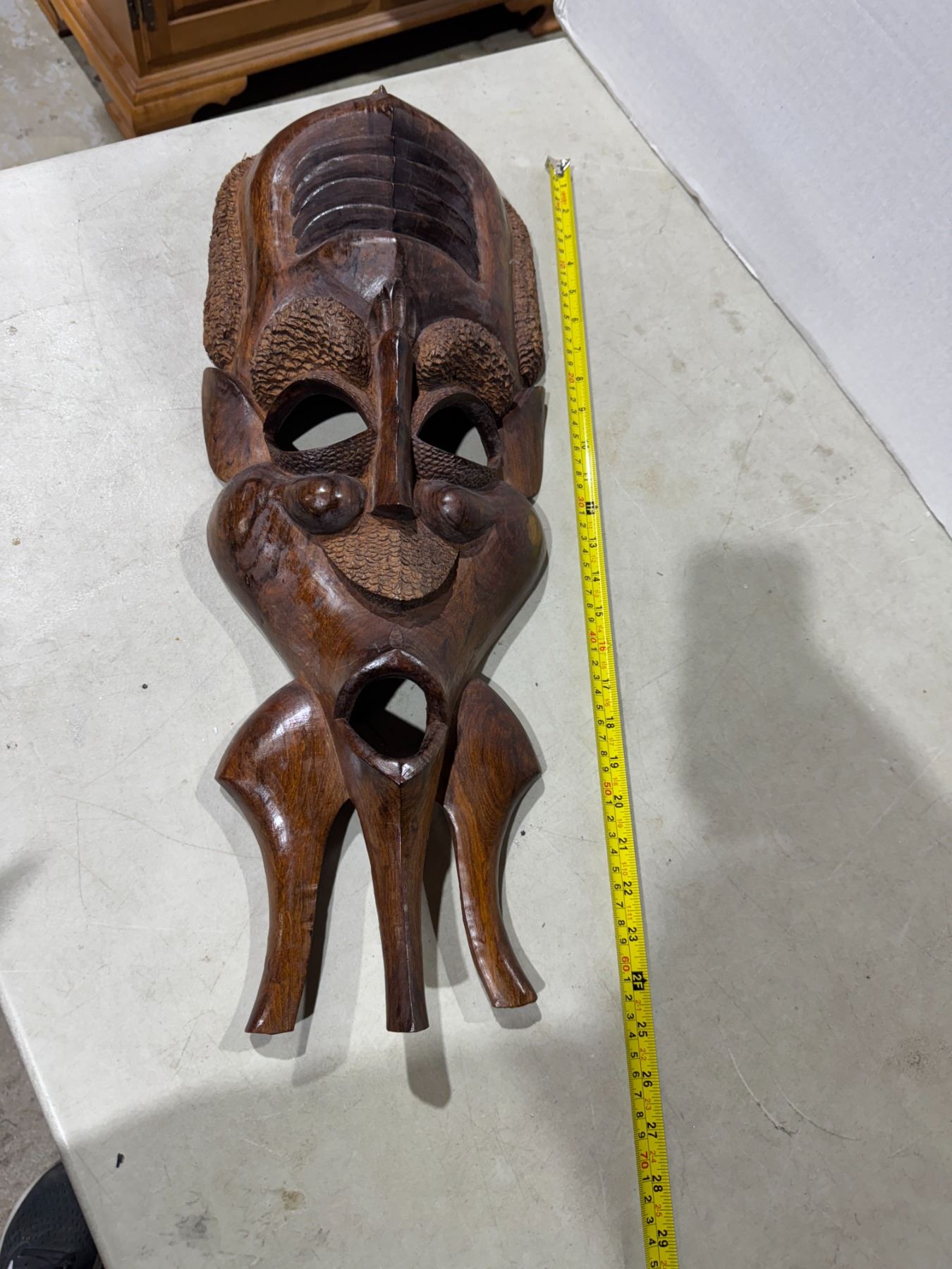 hand-carved wooden tribal African art face wall mask.