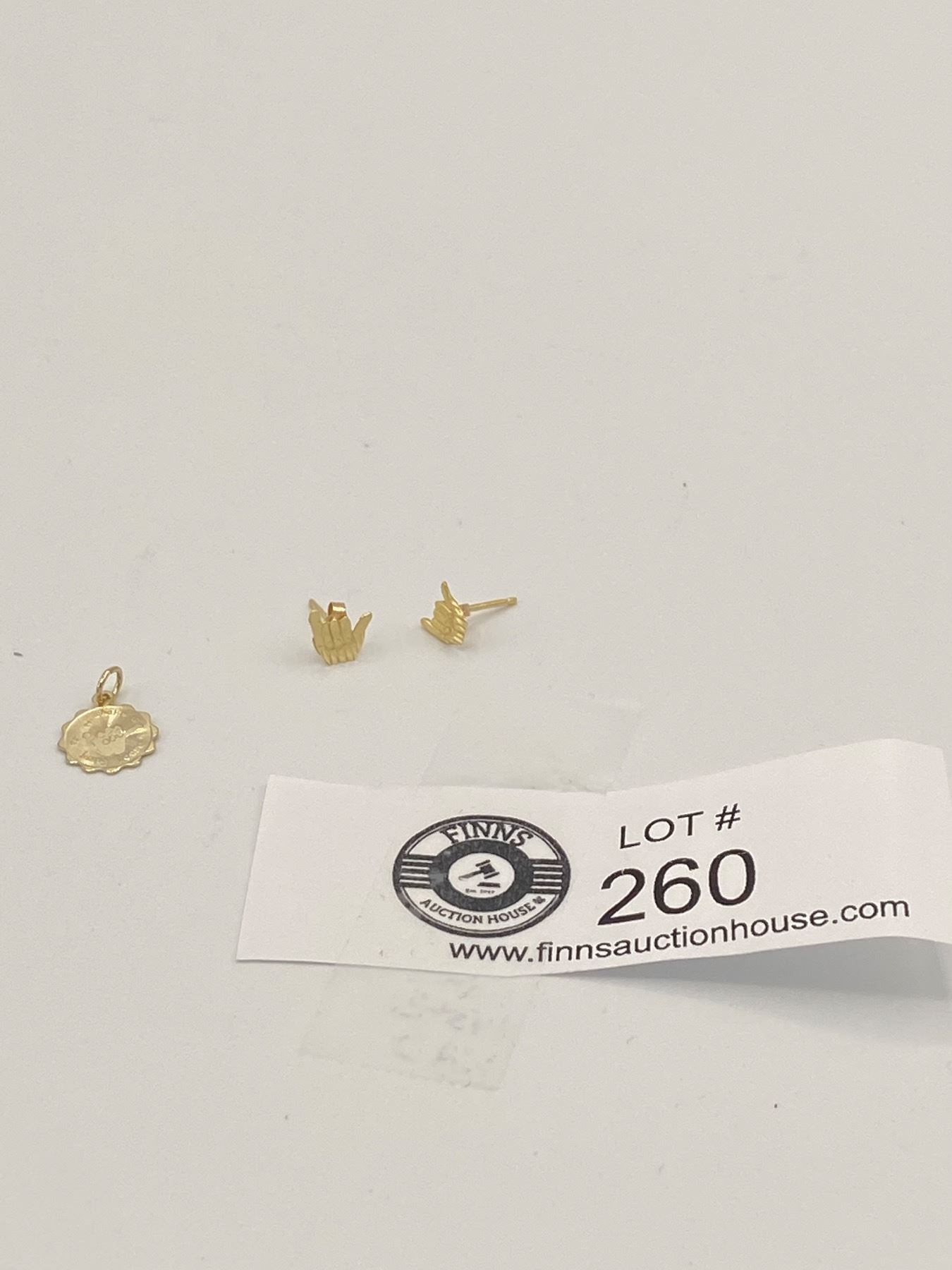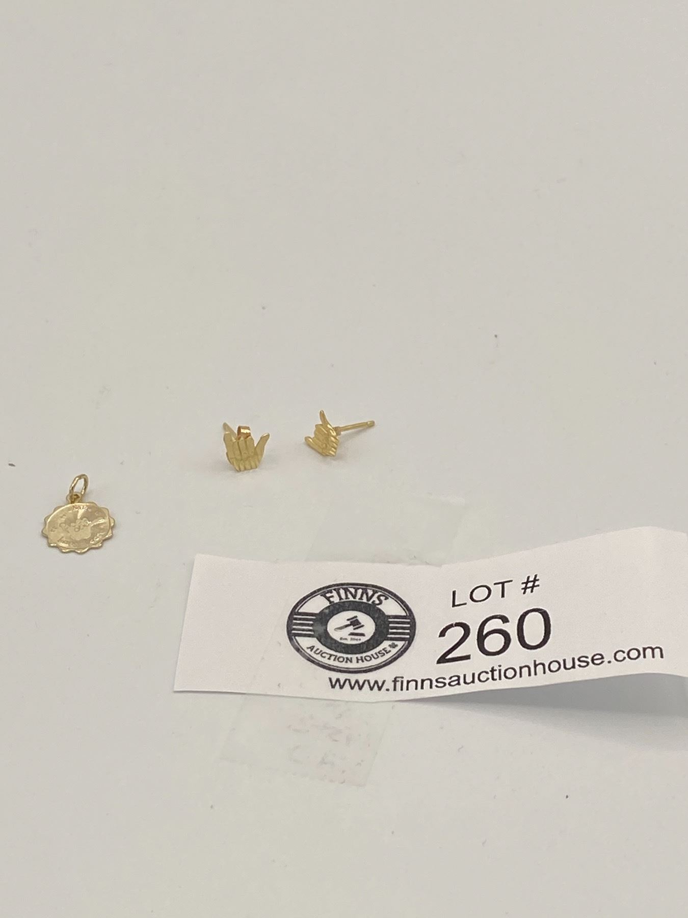 " hang loose" 14kt 0.43 Earrings and Sterling Charm