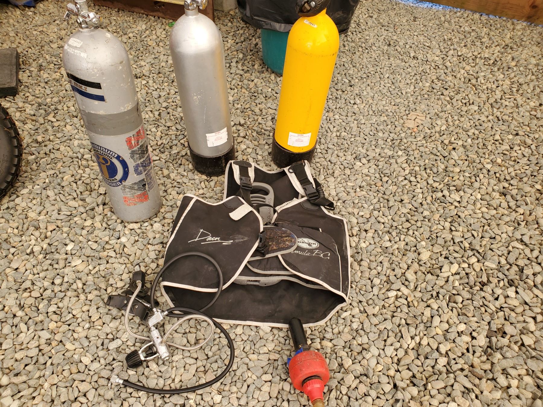 lot of Scuba Gear with three tanks Most Items have not been tested - 17% Buyer Fee. Payment Processed through Live Auction World ( Visa or Master Card ) pick up Saturday, or Tuesday