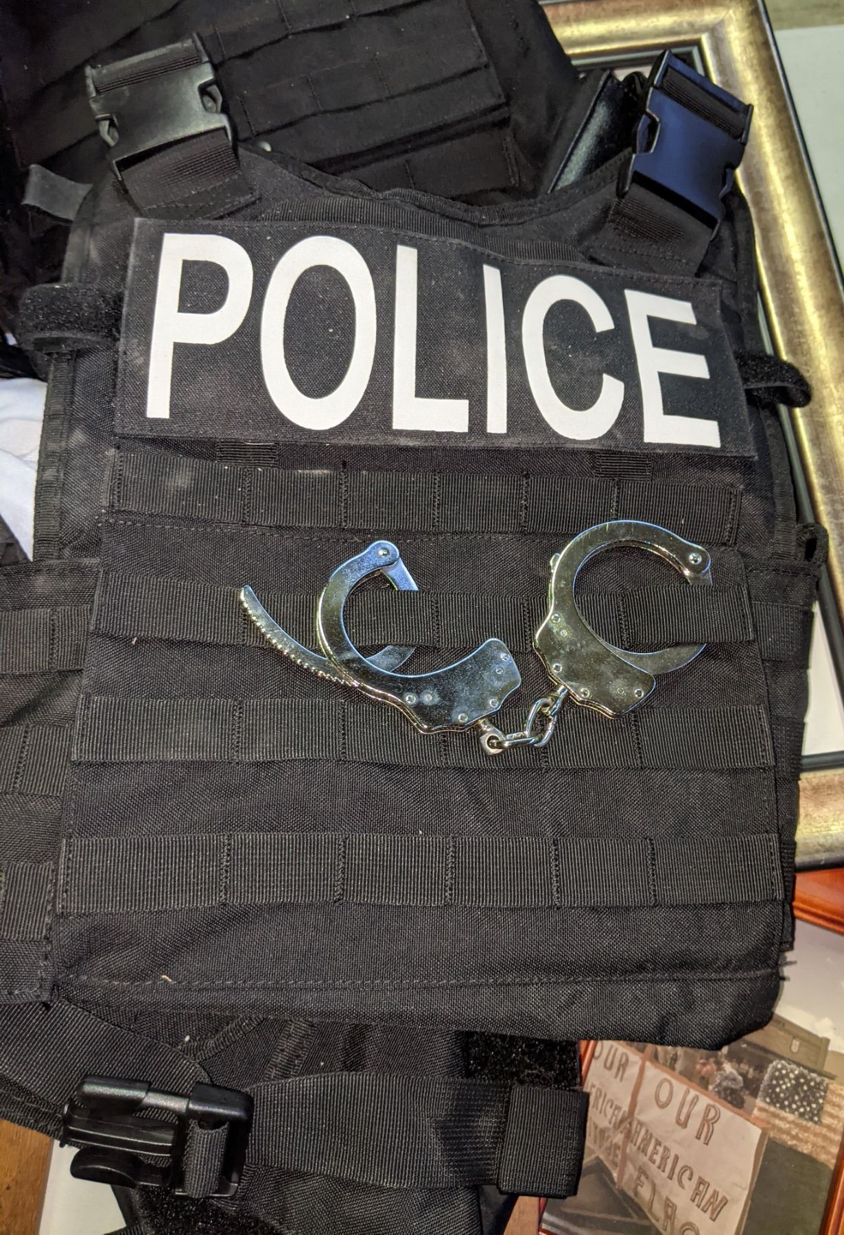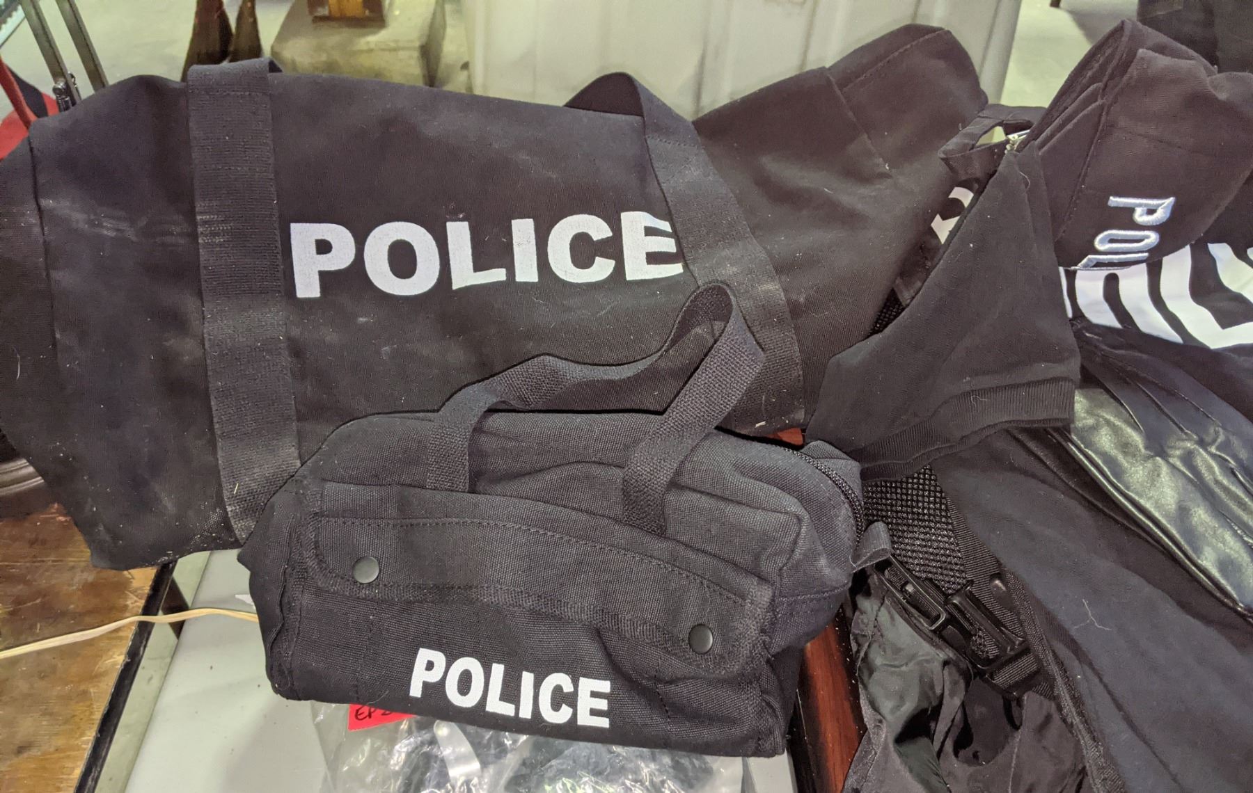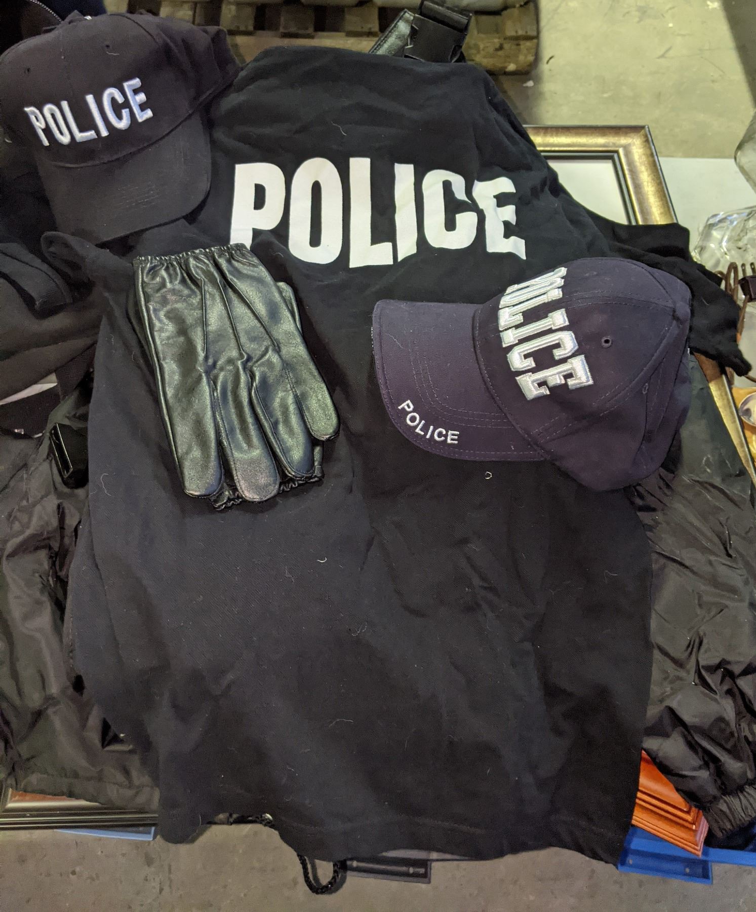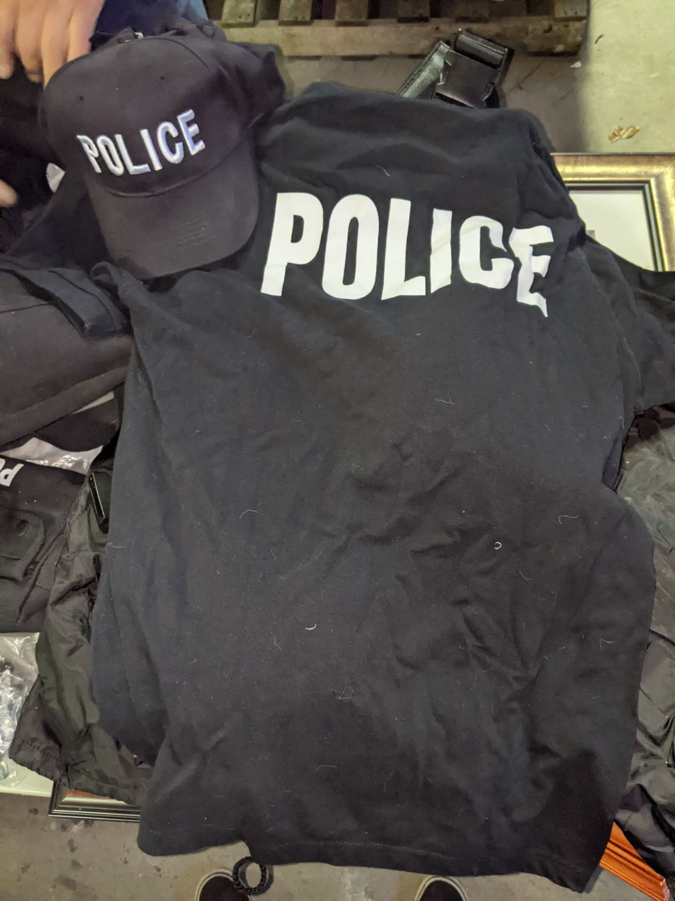 lot of assorted character worn police uniforms, pictures, badges