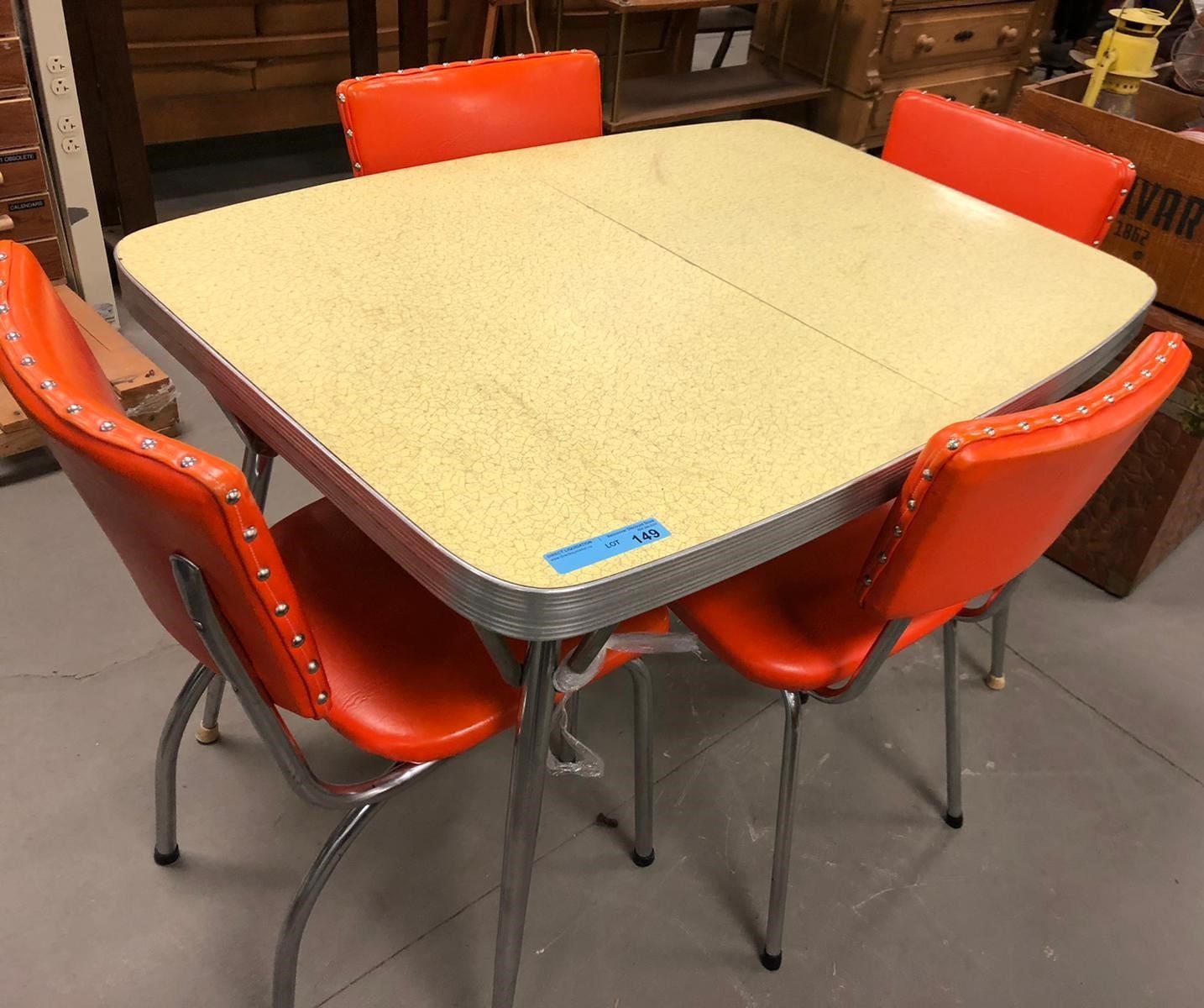 yellow - 41.25" length, 30" depth, 29.5" height - With Chrome Retro Chairs