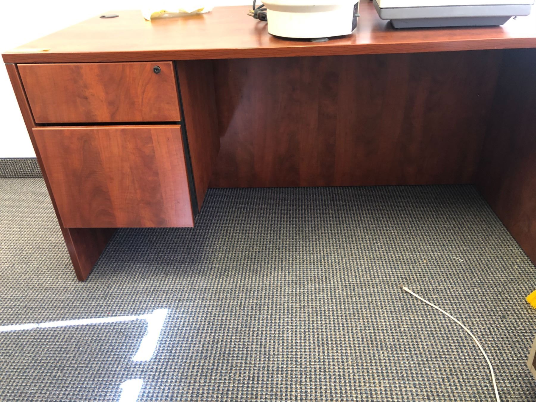 single pedestal 2 drawer wood finish office desk from production office of the show