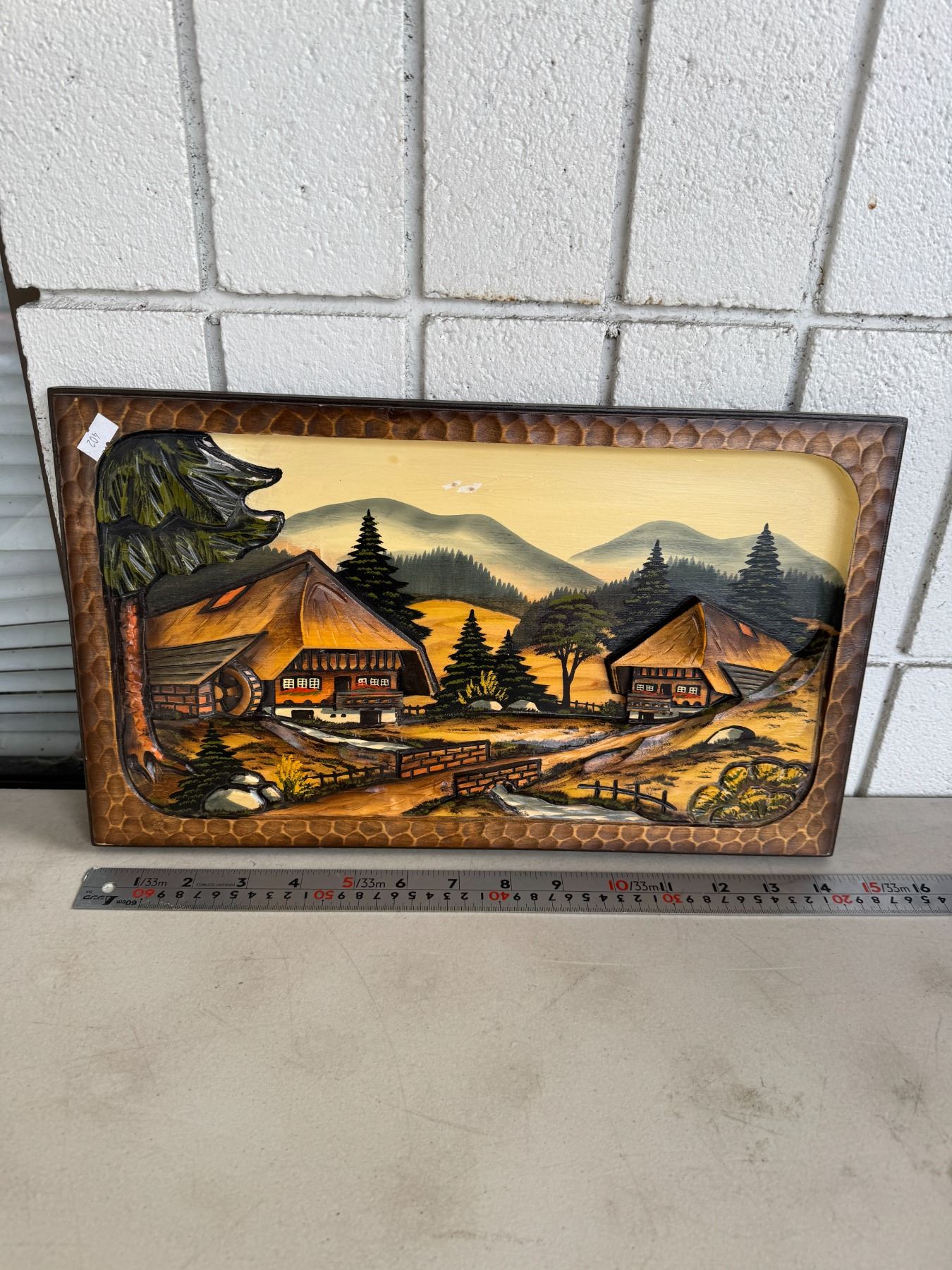 vintage German Black Forest (Schwarzwälder) hand-carved and hand-painted wooden landscape scene