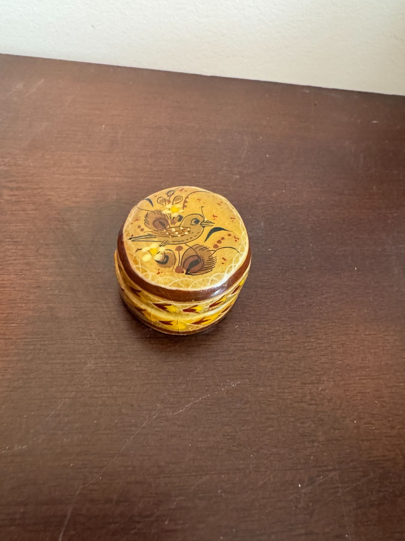 vintage, hand-painted papier-mâché trinket box from Kashmir, India.